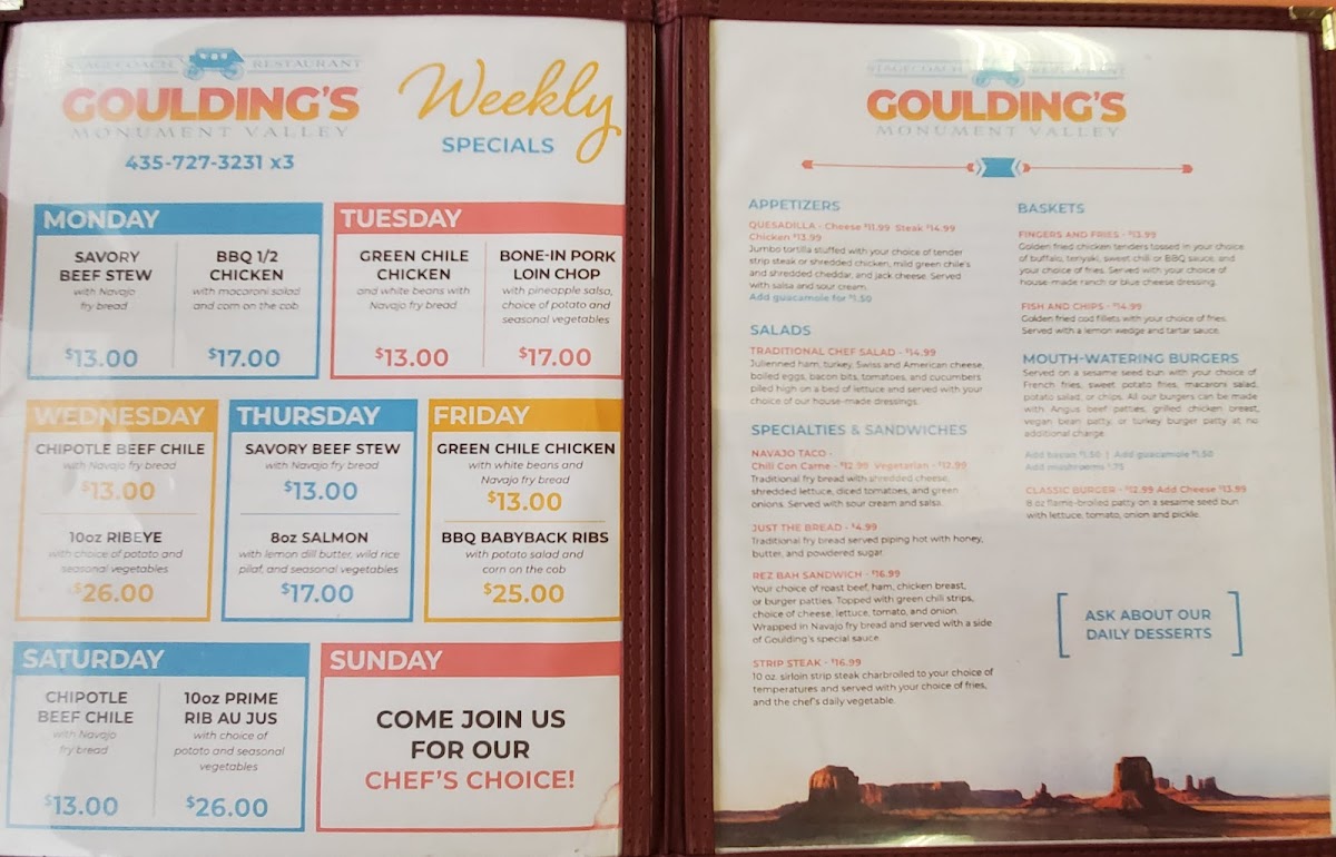 Introducing the Menu at Goulding's Stagecoach Dining Room